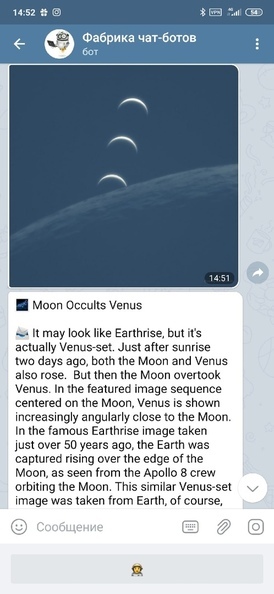 Я давно увлекаюсь космосом и когда пришла идея сделать чат бота с помощью инструментов NASA, за что отдельный респект им, долго не раздумывая приступил к реализации.