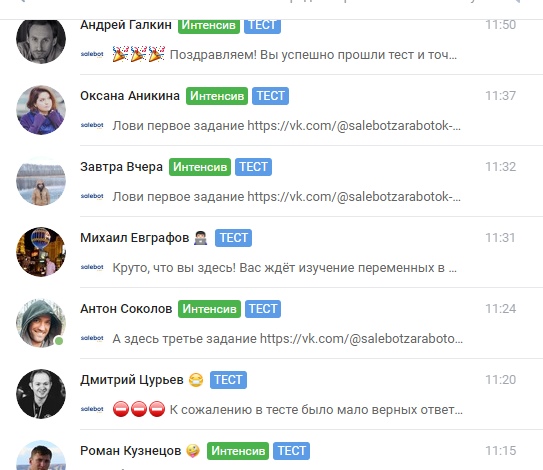 Через Salebot участникам индивидуально выдавался доступ к тесту и заданиям, каждый мог выполнять их в своём темпе. Автопилот отвечал за геймификацию в чате: проверка отчетов по заданиям, начисление баллов, приветствие игроков после выполнения теста.